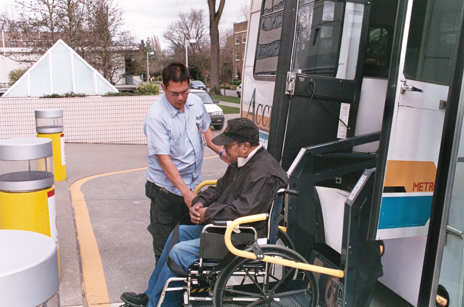 - SGT driver Roland Remolana raises a passenger and his wheelchair onto a Metro ACCESS van.