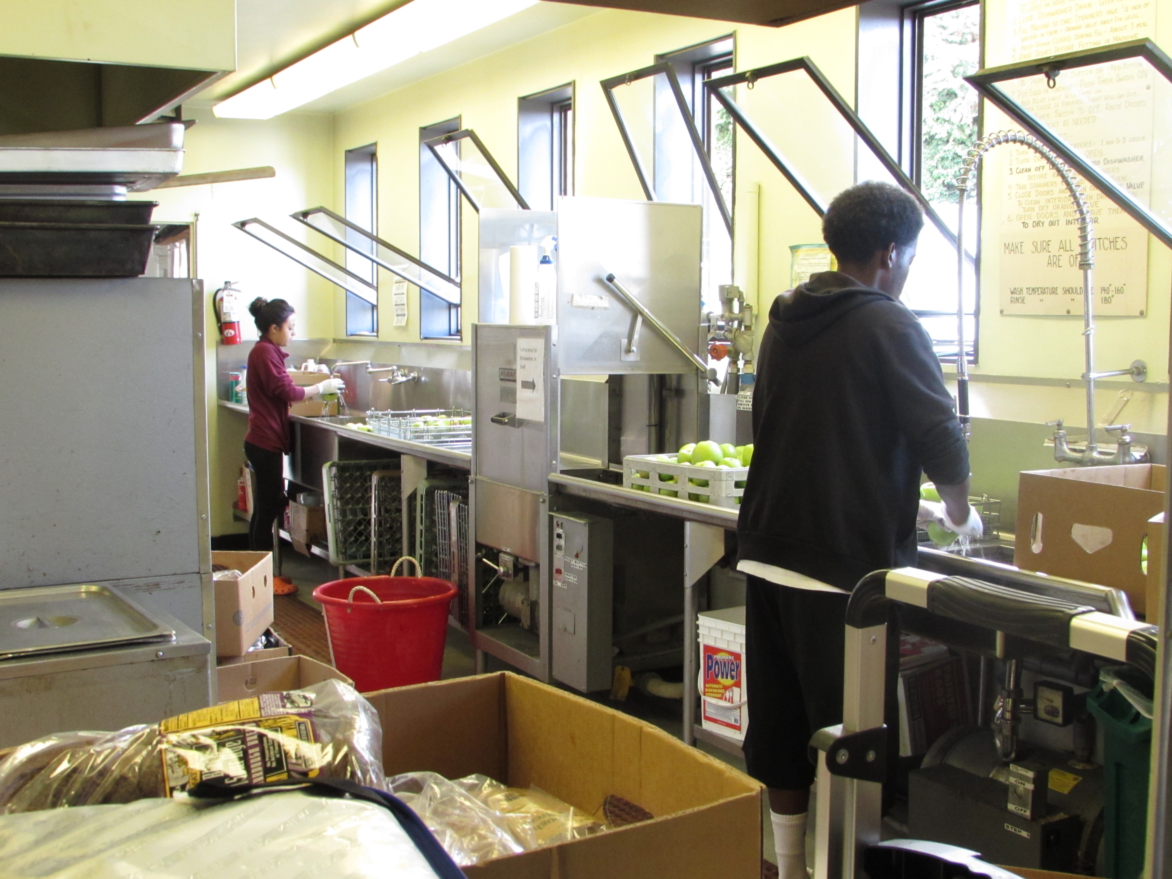 - AmeriCorps members wash food for the backpack program