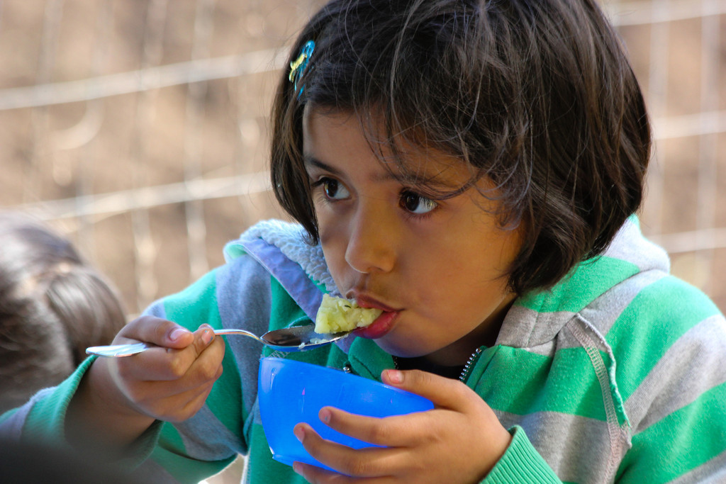 A Concord International School 3rd grader tastes food made from fresh ingredients at Lettuce Link’s Giving Garden at Marra Farm.