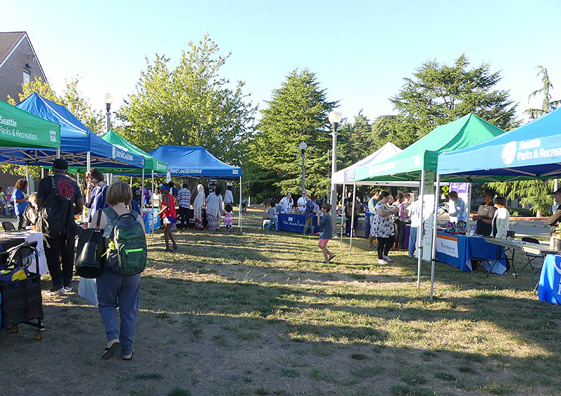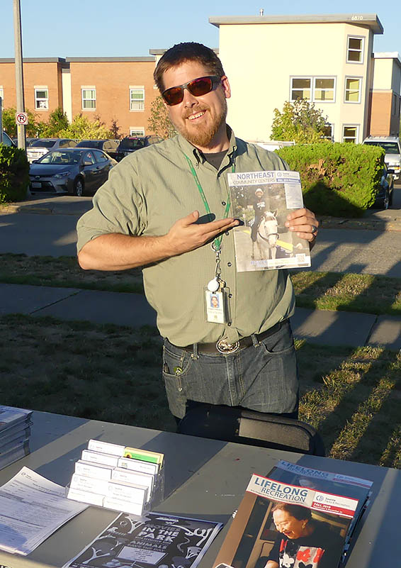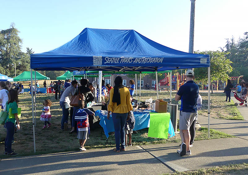 One Sand Point Family Housing mom says she and her son had a great view of the event setup from their apartment and got to watch the booths literally pop up over the course of the afternoon. As part of Seattle Parks & Rec, Assistant Coordinator Doug Oaksford of Magnuson Community Center says, “We’re always happy to partner with Solid Ground; we do a lot together.” Doug helped prep for the event from start to finish as part of the planning committee. Day of, he says, “I set up many tables, many popup tents, and the sound equipment! I’m more of a boots-on-the-ground-type guy than an idea-type person, but I’m happy to help in any way that I can.”