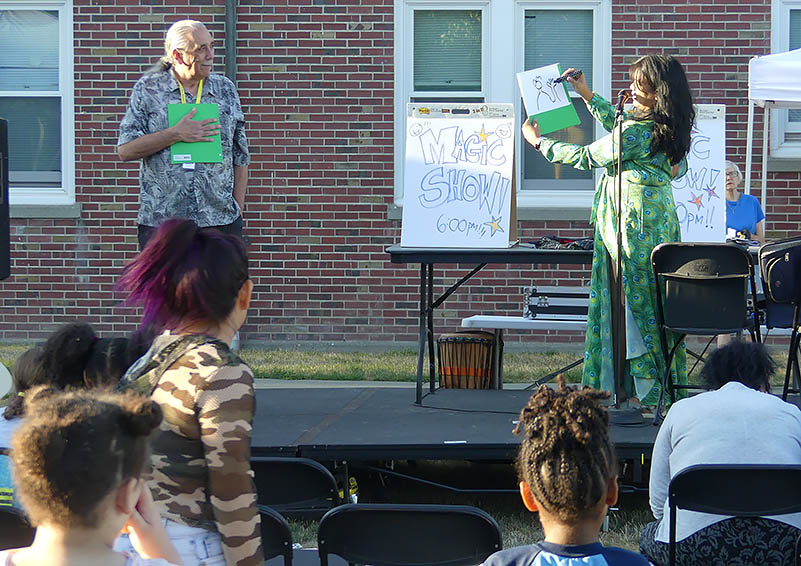 Solid Ground Children’s Group Facilitator David Olivera was a willing subject in Seattle Public Library’s Magic Show with magician Maritess Zurbano.