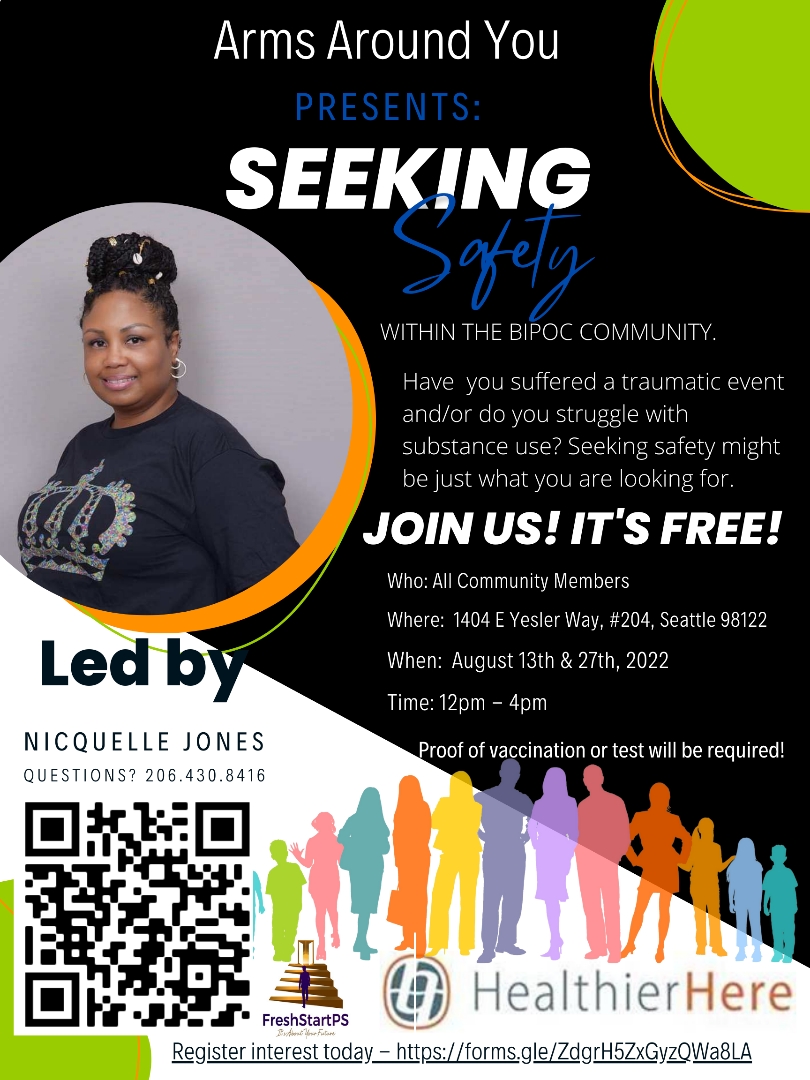 MORE INFO: Contact Nicquelle Jones at 206.430.8416 or download the Seeking Safety flyer for August 2022.