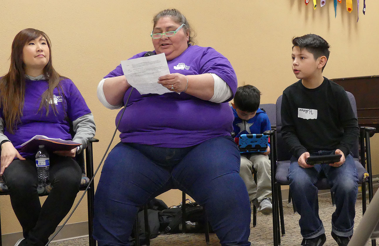 First, in 2009, Juanita joined Solid Ground’s former Client Advisory Council, which gave her a platform to be an advocate for herself and set the stage to involve her two kids, Jessie and Jeremy, in advocacy. She then brought her leadership to Poverty Action’s Board of Directors, where she had the opportunity to advocate for herself and others at the state level.